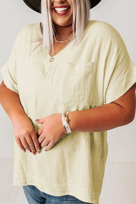 Textured V-Neck, Beige