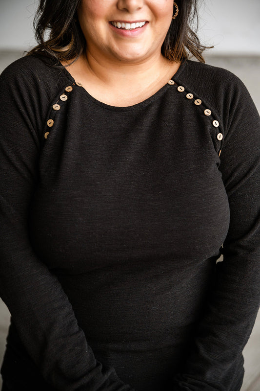 Sold outButton Detail Long Sleeve Top, Black